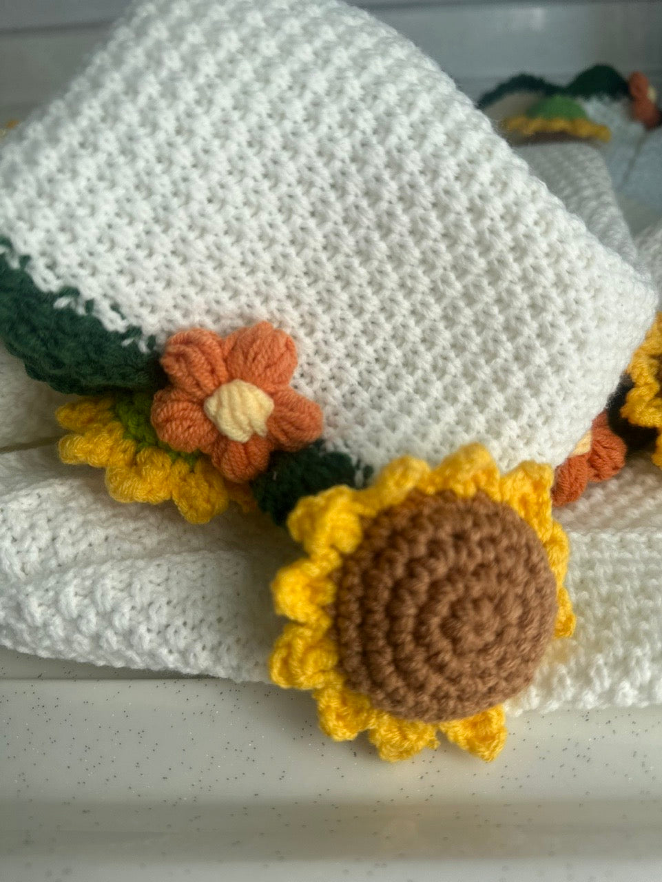 WrapTheLove Finished Handmade Crochet Sunflower Bouquet Blanket, Soft Knitted Throw Blanket, Romantic Gift for Birthday, Wedding, Valentine's Day, Mother's Day, Christmas for mum, daughter, girls, and sisters, friends